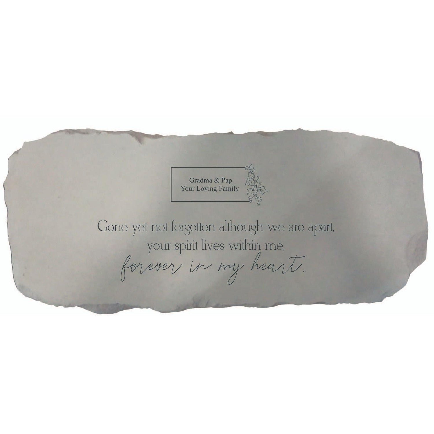 Gone yet not forgotten, although we are apart, your spirit lives within me, forever in my heart.