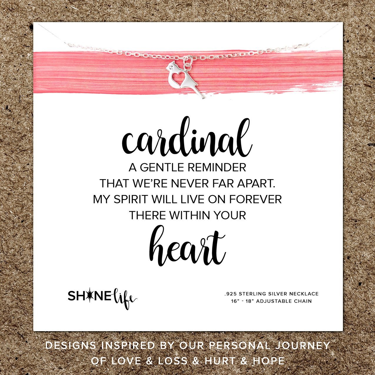 DISPLAY CARD READS: cardinal A gentle reminder that we're never far apart. My spirit will live on forever there within your heart.
