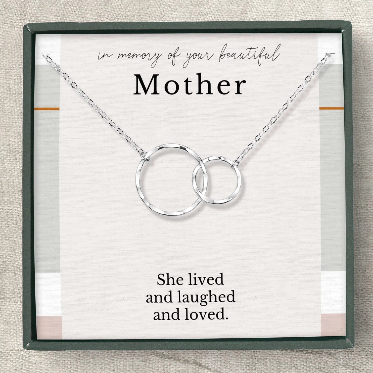 The Eternal Rings memorial necklace for the loss of a mother is designed to honor the enduring bond between a mother and child.