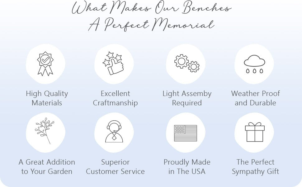 Weatherproof and durable, these memorial garden benches offer a permanent and touching way to honor a loved one.
